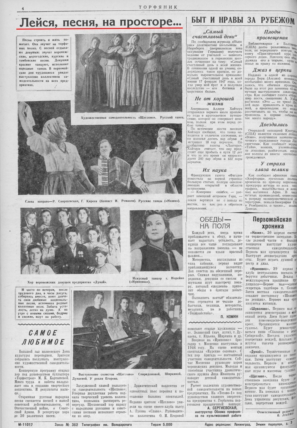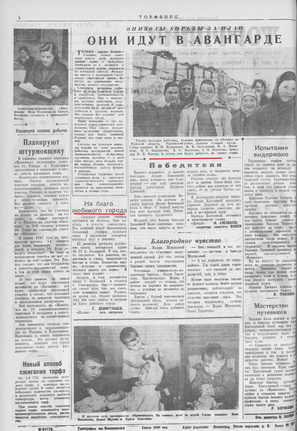 Газета «Смена на торфопредприятии „Назия“ 1944 г.»